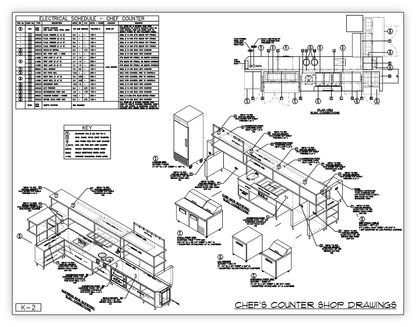 Our foodservice design specialists deliver comprehensive commercial kitchen equipment layouts, complete with CAD drawings, utility specifications, equipment schedules, and submittal packages to ensure seamless project execution.